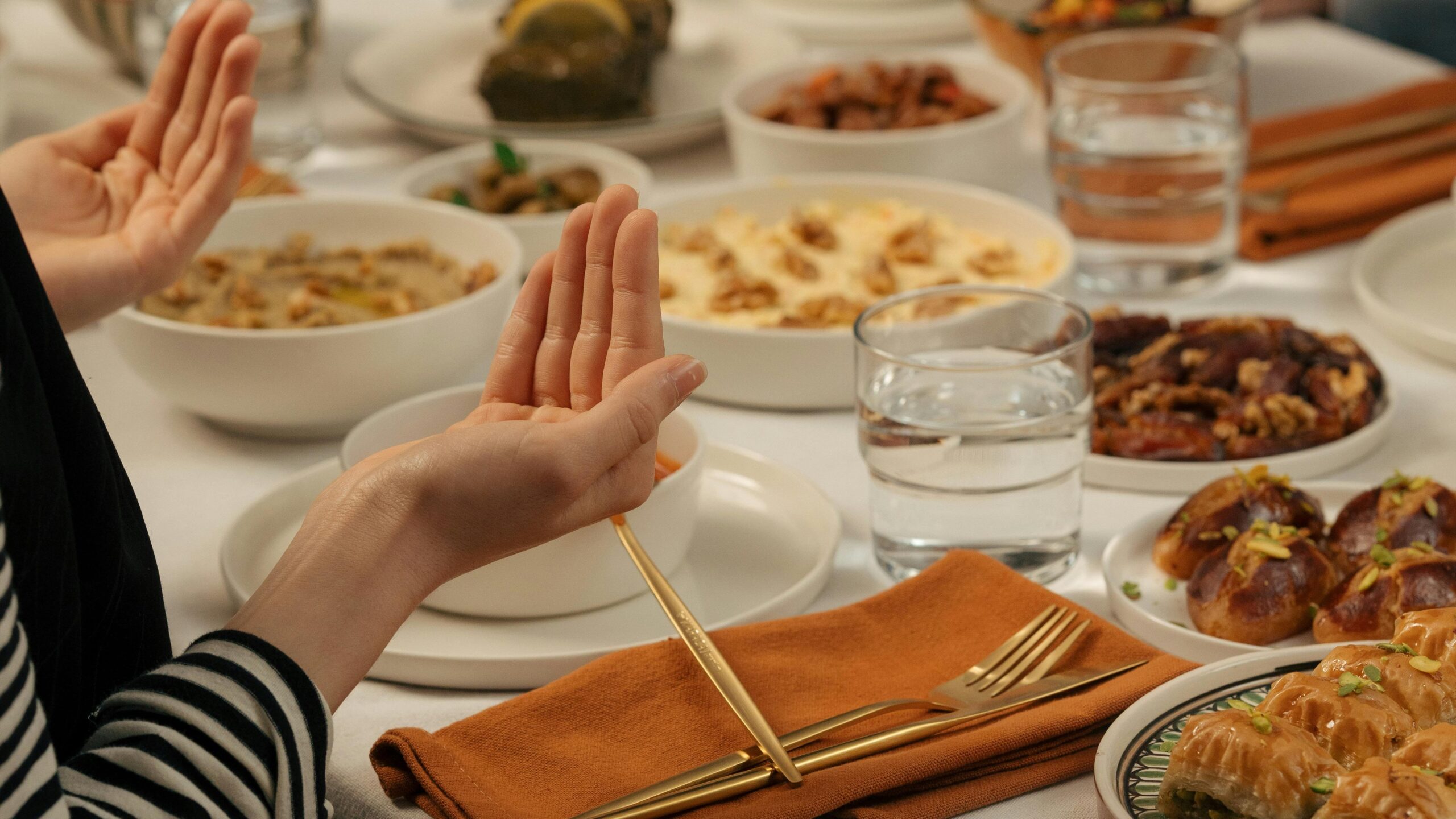 Atur asupan air putih yang cukup saat berbuka dan sahur (metode 2-4-2: 2 gelas saat berbuka, 4 gelas malam hari, 2 gelas saat sahur) untuk mencegah dehidrasi saat bekerja. Kurangi minuman bergula atau berasa manis.